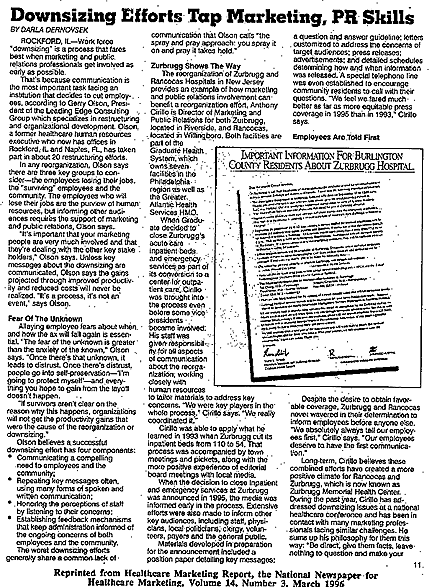 Healthcare Marketing Report, March 1996 Crisis communication case study of the closing of an acute care hospital.